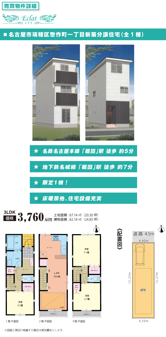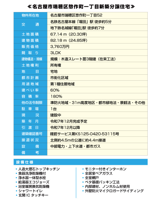 物件種目 | 名古屋市瑞穂区惣作町一丁目新築分譲 |
