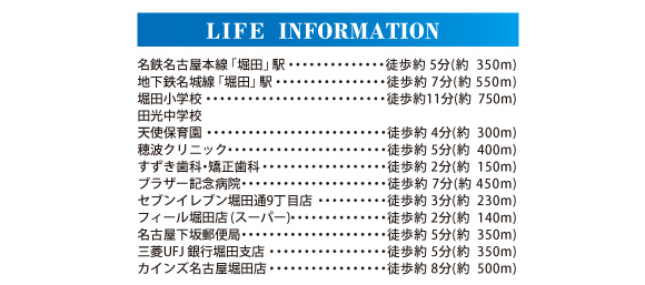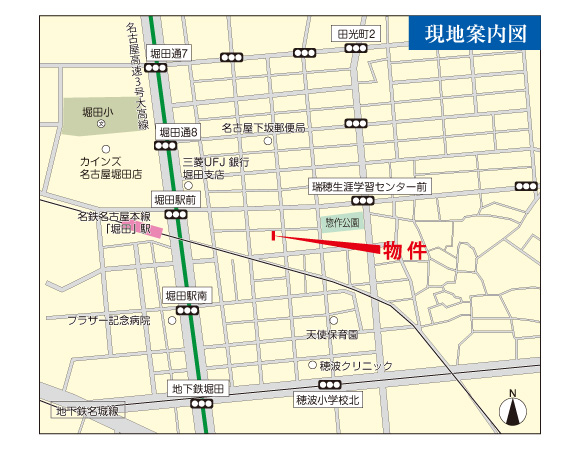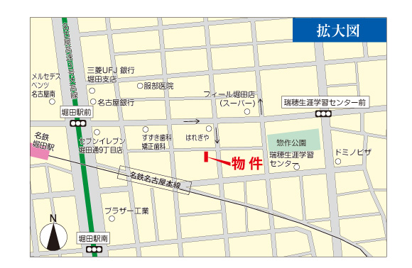 交 通 | 名鉄名古屋本線「堀田」駅 徒歩約5分 地下鉄名城線「堀田」駅 徒歩約7分 |