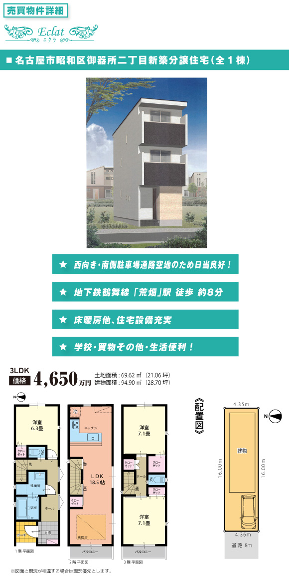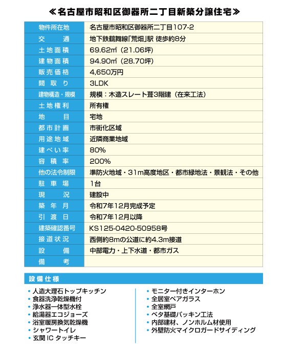 物件種目 | 名古屋市昭和区御器所二丁目新築分譲 |