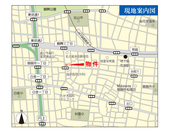 交 通 | 地下鉄鶴舞線「荒畑」駅 徒歩約8分 |