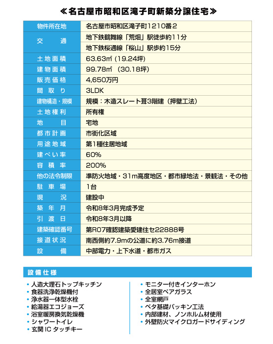 | 物件種目 | 名古屋市昭和区滝子町新築分譲 |